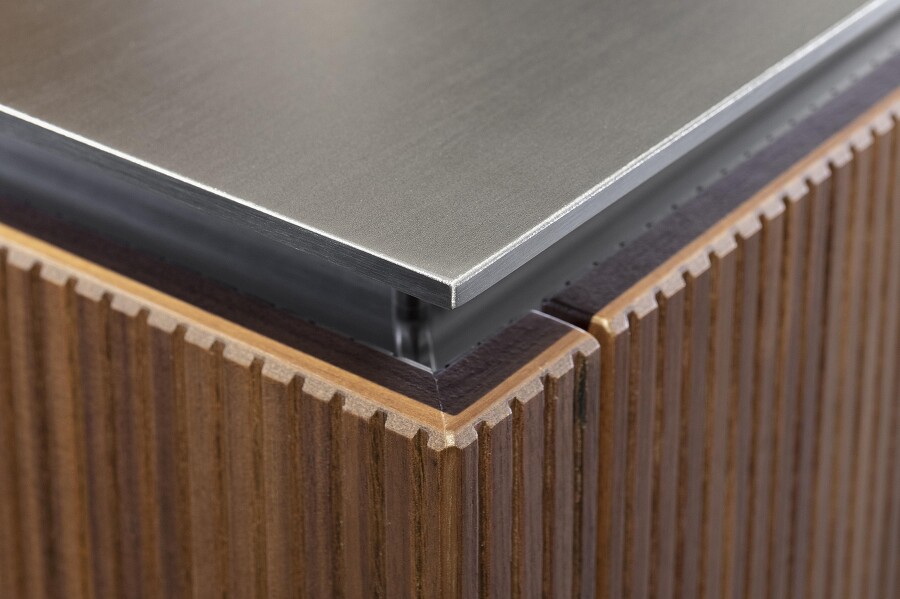 Die Wirkung ist in jedem Fall extravagant. Die schmalen Fugen lassen die Küchenmöbel auch filigraner erscheinen, vor allem in der vertikalen Ausrichtung. Gerade Kücheninseln wirken damit eleganter, mehr wie ein Bar- oder Wohnzimmer-, denn ein Küchenmöbel.